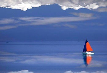 O barco, impulsionado pela força dos ventos, vai ganhando o mar azul e nos parece cada vez menor.